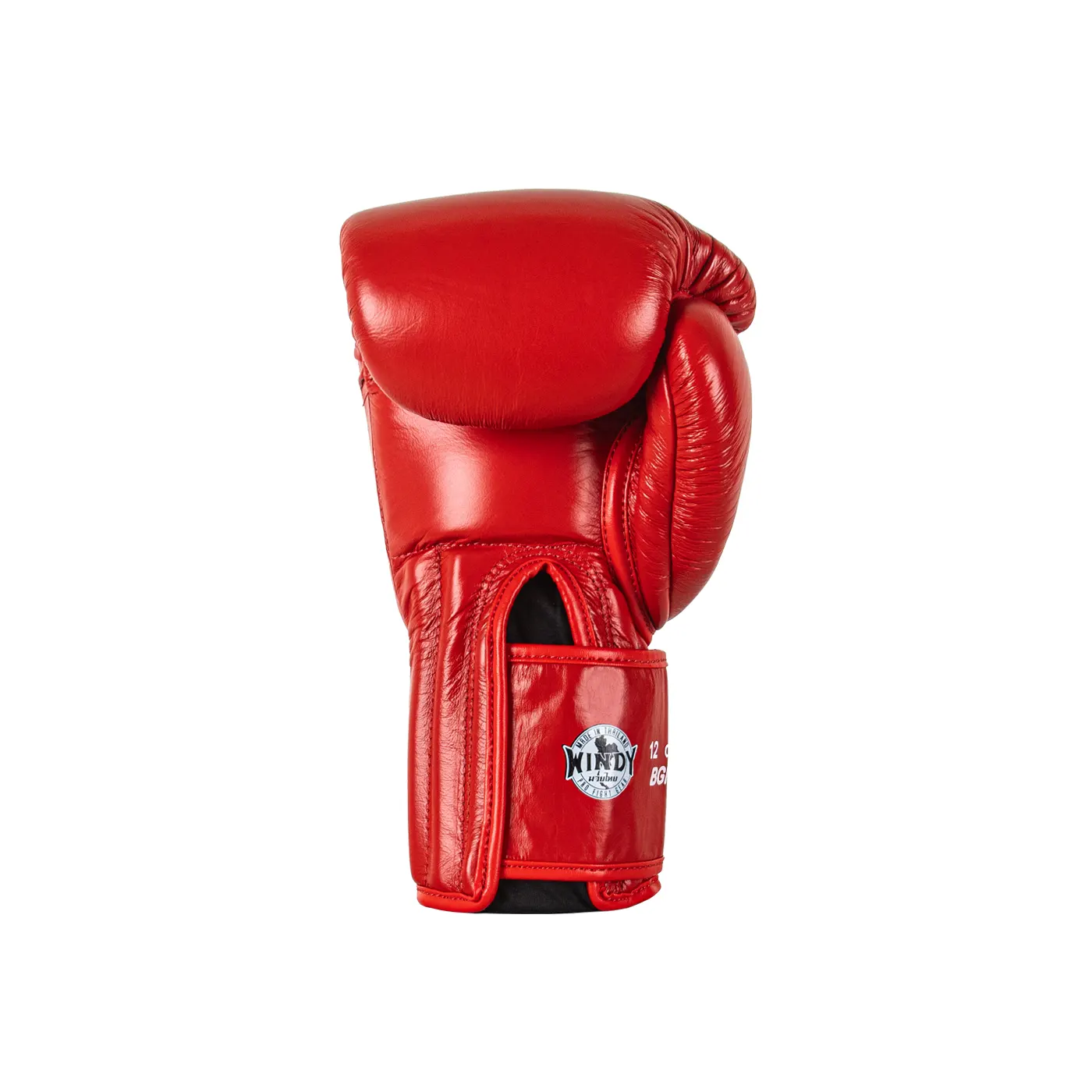 Guantes de Muay Thai Windy rojos, fabricados en cuero vacuno especialmente seleccionado.